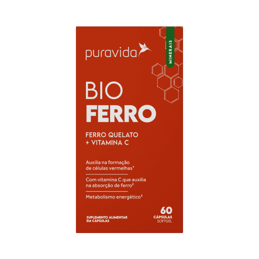 Na incessante busca pela excelência em nutriçãoe bem-estar, a Puravida apresenta o Bio Ferro:uma combinação eficaz entre ferro bisglicinatoe vitamina C, essencial para a absorção de ferro.