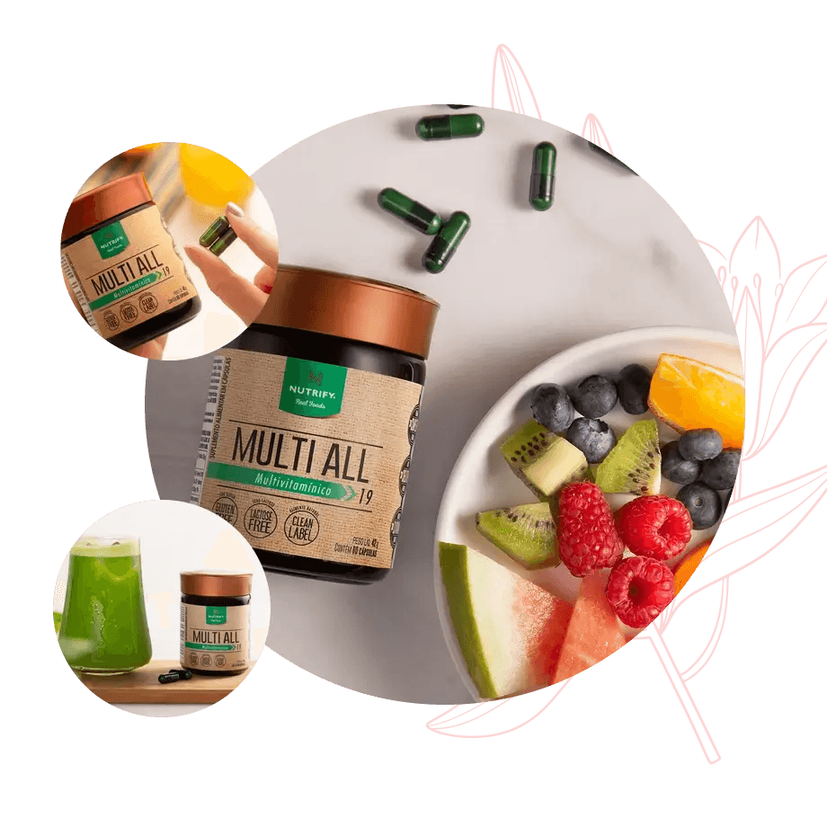 Além dos benefícios individuais de cada nutriente, a interação entre diferentes vitaminas e minerais potencializa sua absorção e eficácia no organismo. Como nem sempre é possível obter todos esses nutrientes apenas pela alimentação, o Multi All Nutrify oferece uma solução prática e segura para complementar a dieta e garantir um suporte nutricional completo.