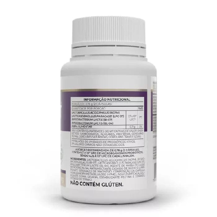 Disponível em cápsulas resistentes ao ph do estômago. São 17 bilhões de micro-organismos por dose para ajudar sua microbiota intestinal.